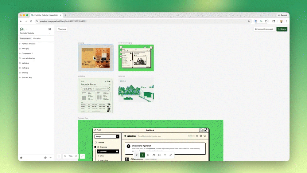 This week, MagicPath released "Images on Canvas," a new feature that allows users to drag images directly into projects for inspiration or as visual references when creating components.