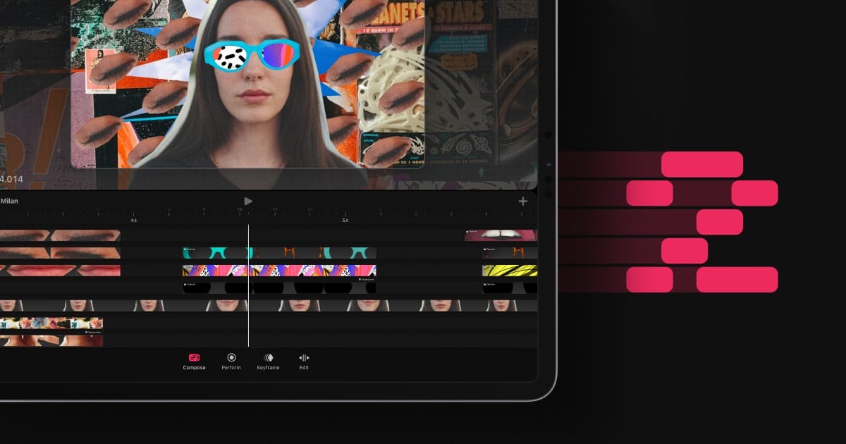 Redesigned timeline with 3 modes: Work in dedicated spaces for different animation tasks: Compose for positioning content without disrupting keyframes, Perform for recording motion through touch, and Keyframe for creating and editing keyframes.